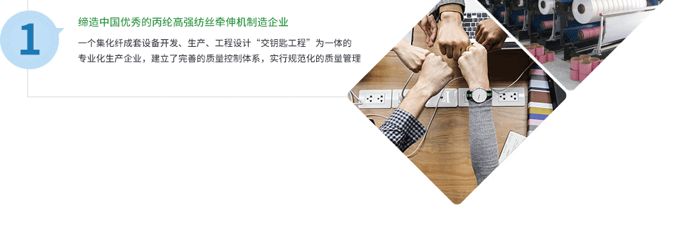公司致力于制造質(zhì)量上乘的產(chǎn)品,優(yōu)質(zhì)的售后服務(wù)。產(chǎn)品為國內(nèi)眾多企業(yè)服務(wù),并遠銷東南亞、東歐及南美。我們期待與海內(nèi)外客戶廣泛合作,共創(chuàng)化纖工程新輝煌。